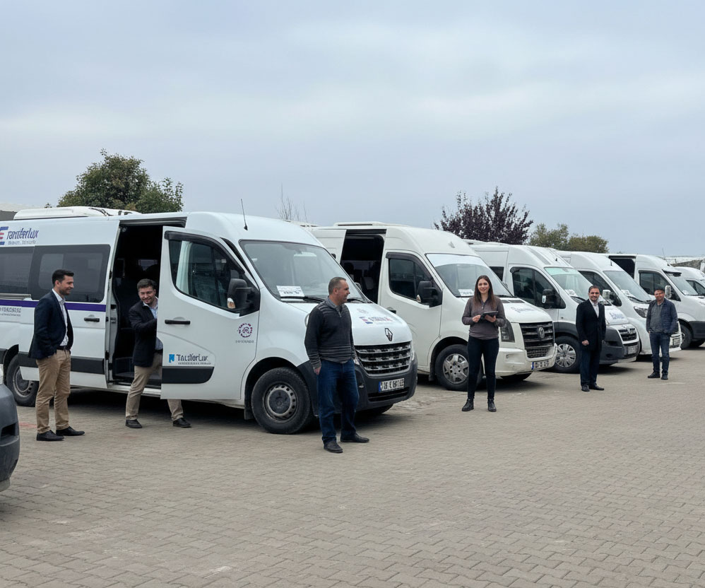 Deneyimli sürücülerimiz ve bakımlı araçlarımız ile işleriniz aksamadan, personeliniz tam vaktinde ve güvenle iş yerinizde...